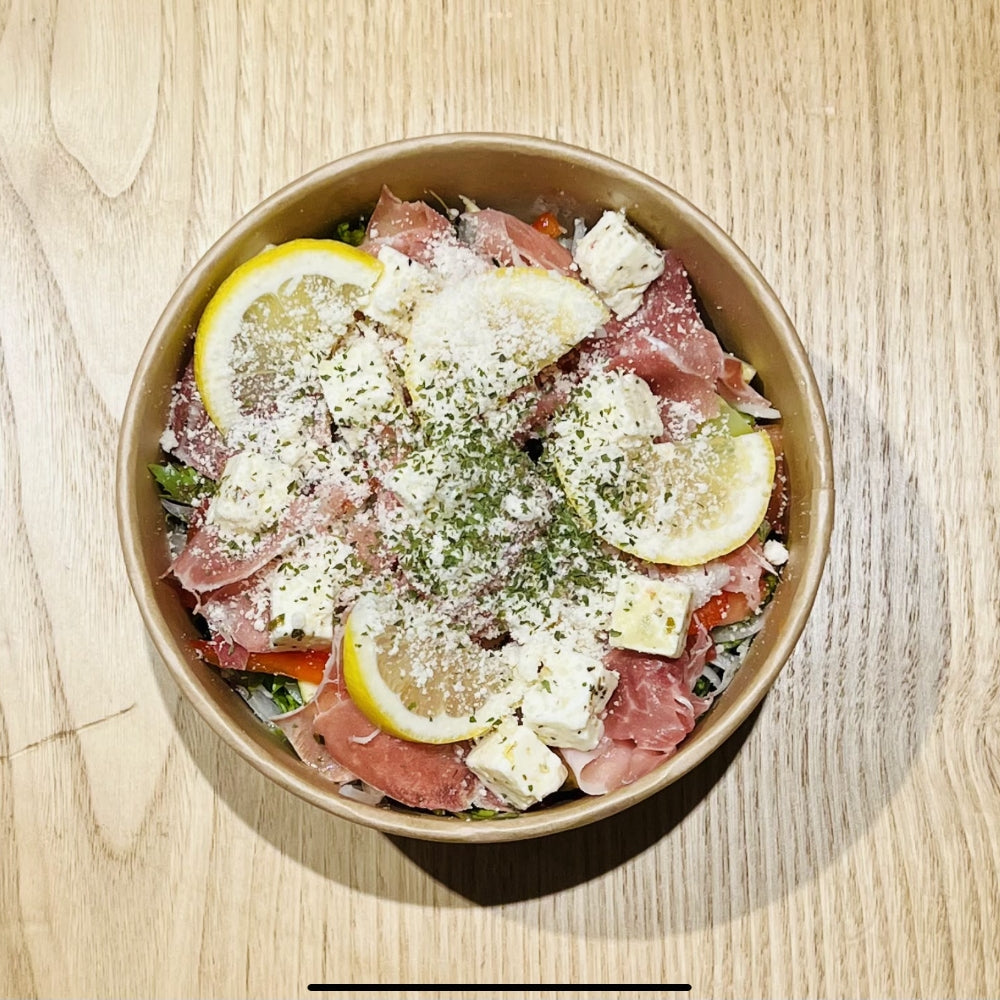 【いつも頑張っているあなたに食べてほしい疲労回復サラダ】 疲労回復ビタミンとも呼ばれるビタミンB1、鉄分、亜鉛、ミネラル、乳酸菌がたっぷり。風邪予防にもおすすめ。生ハムは肉料理を控えるプロのスポーツ選手にも大人気なアスリートミート。